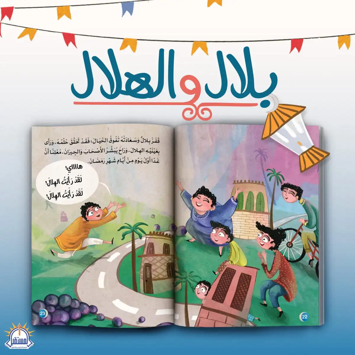 1- كتاب قصة بلال والهلال : ومن خلاله يتعلم طفلك معلومات عن رؤية هلال شهر رمضان المبارك