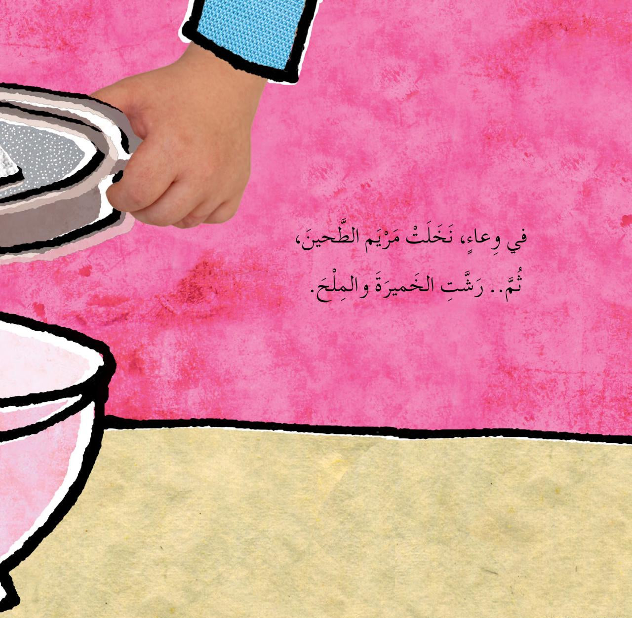 مريم تحبّ أن تعجن، وتقضي أوقاتاً في تحضير المعجنات وخصوصاً المناقيش. تعجن المنقوشة بيديها القويتين، ثمّ تقدّمها لرفاقها بابتسامة رائعة تنبع من قلبها الطيّب.. ولم تنتهِ الحكاية ها هنا، فخلف مناقيش مريم حكاية أخرى هي حكاية مريم التي تعاني متلازمة داون.