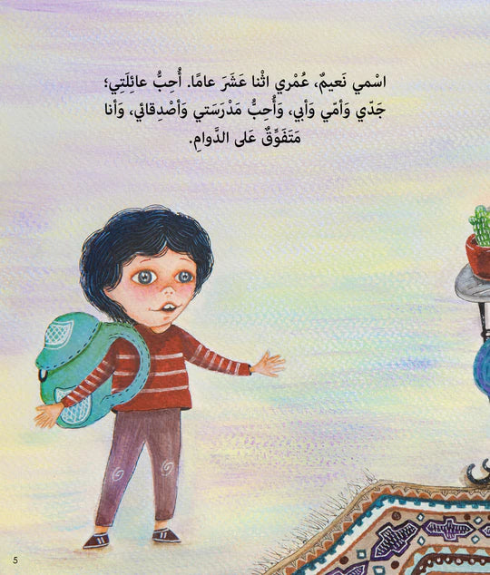 نعيم طفل مجتهد، مهذب، يحبه أصدقاؤه كثيرًا، لكن عنده مشكلة، ومشكلته يحلّها بواسطة قبعته الصفراء. كيف يمكن أن يكون ذلك؟ وهل بقيت قبعته الصفراء مصدره الوحيد لحلّ مشكلاته؟