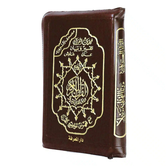 مصحف التجويد والتحفيظ ضمن غلاف سوستة قياس 12×17سم مع تفسير الكلمات