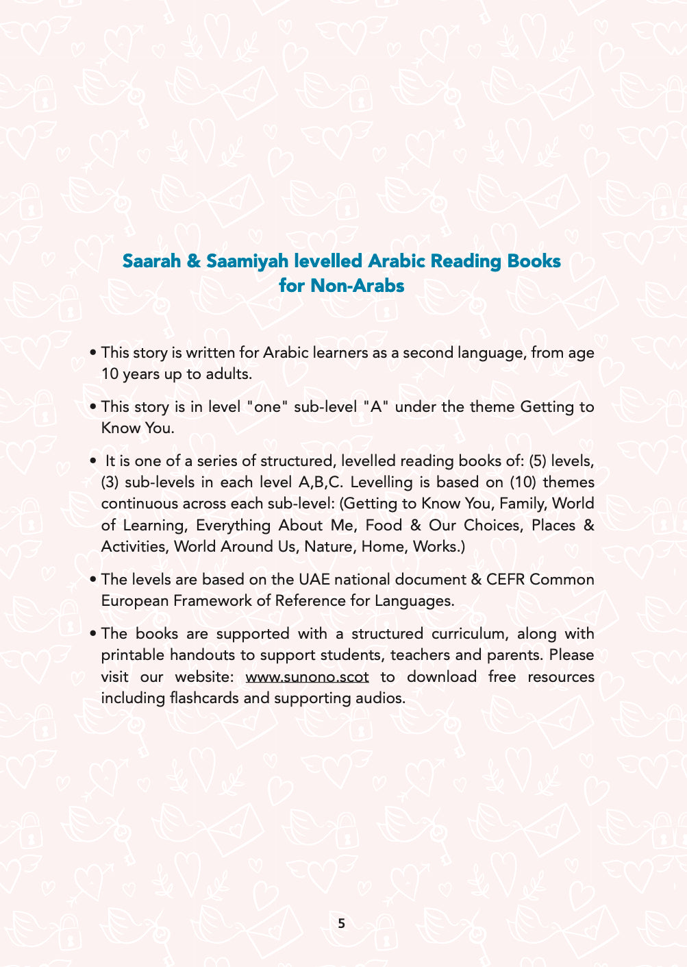 حتى البالغين القصة من سلسلة (سارة وسامية) للقراءة المتدرّجة، وتقع في 5 مستويات رئيسة تندرج تحتها 3 مستويات فرعية أ، ب، ج وتقع القصص تحت 10 مفاهيم متتابعة في كل مستوى فرعي على النحو التالي التعارف الأسرة عالم الدراسة كل شيء عنّي خياراتنا