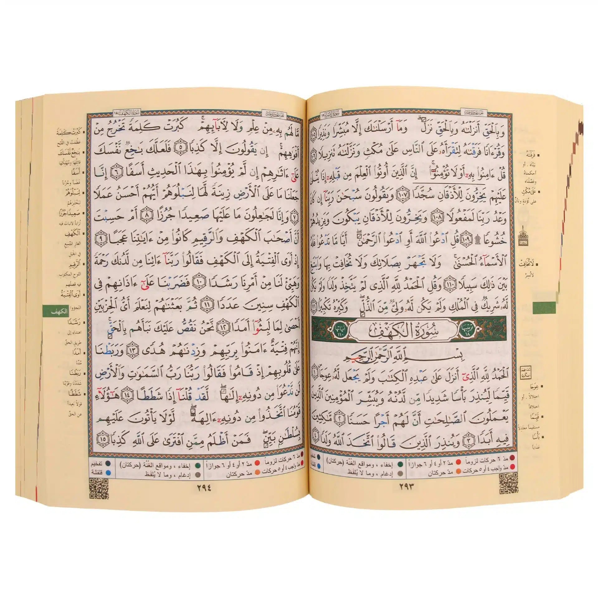 مصحف التجويد: ييسّر لك التّطبيق العمليّ لأحكام التّجويد ويصبح ذهنك متفرّغاً لفهم معاني آيات ّالقرآن الكريم من خلال الترميز الزمنيّ واللونيّ لأحكام التجويد.