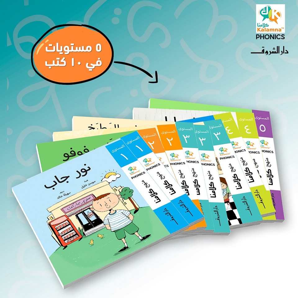 برنامج كلامنا لتعليم اللغة العربية للأطفال بنظام الصوتيات المتدرجة مقسمة لـ 5 مستويات، وهو برنامج متكامل لدعم تعلم الطفل قراءة اللغة العربية في السنوات المبكرة من حياته، وبشكل أسرع وأسهل وأمتع. - البرنامج يختلف عن الطرق التقليدية التي تعتمد على حفظ الأبجدية، فيقدم اللغة العربية من خلال أصوات الحروف، بدءا بالحروف الأكثر شيوعًا وبمفردات من حياة الطفل اليومية، ما يجعله مناسبًا لاستخدام أولياء الأمور في البيت أو للتدريس في المدارس. - بداخل البرانامج ستلاحظ الكلمات والحروف مكررة، وذلك حتى يألف الطفل شكل وصوت الكلمات عند القراء. - بظهر غلاف مجموعة الكروت والكتب موضح إرشادات كيفية استخدام البطاقات وكتب كلامنا مع الطفل، لضمان الحصول على الاستفادة الكاملة من البرنامج